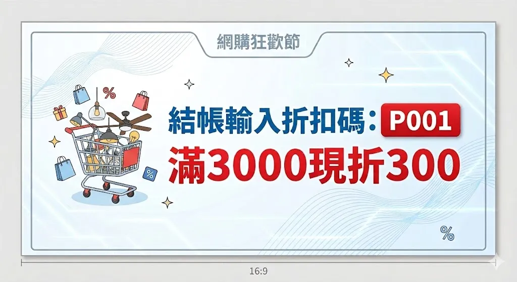 折扣碼P001~滿3000現折300